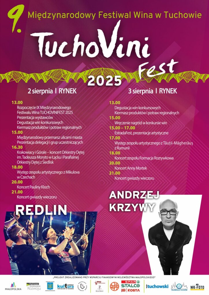 Pogórzańskie Stowarzyszenie Rozwoju i Burmistrz Tuchowa serdecznie zapraszają na Międzynarodowy Festiwal – Tuchovinifest, który odbędzie się na Rynku w Tuchowie 2 i 3 sierpnia 2025.
