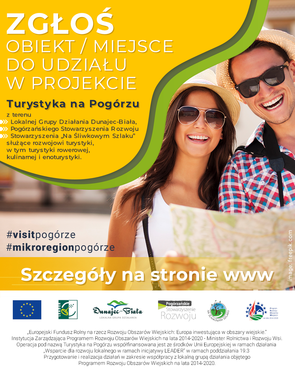 Znasz obiekt/miejsce służące rozwojowi turystyki, w tym turystyki rowerowej, kulinarnej i enoturystyki na obszarze Lokalnej Grupy Działania Dunajec-Biała, Pogórzańskiego Stowarzyszenia Rozwoju oraz Stowarzyszenia „Na Śliwkowym Szlaku”?